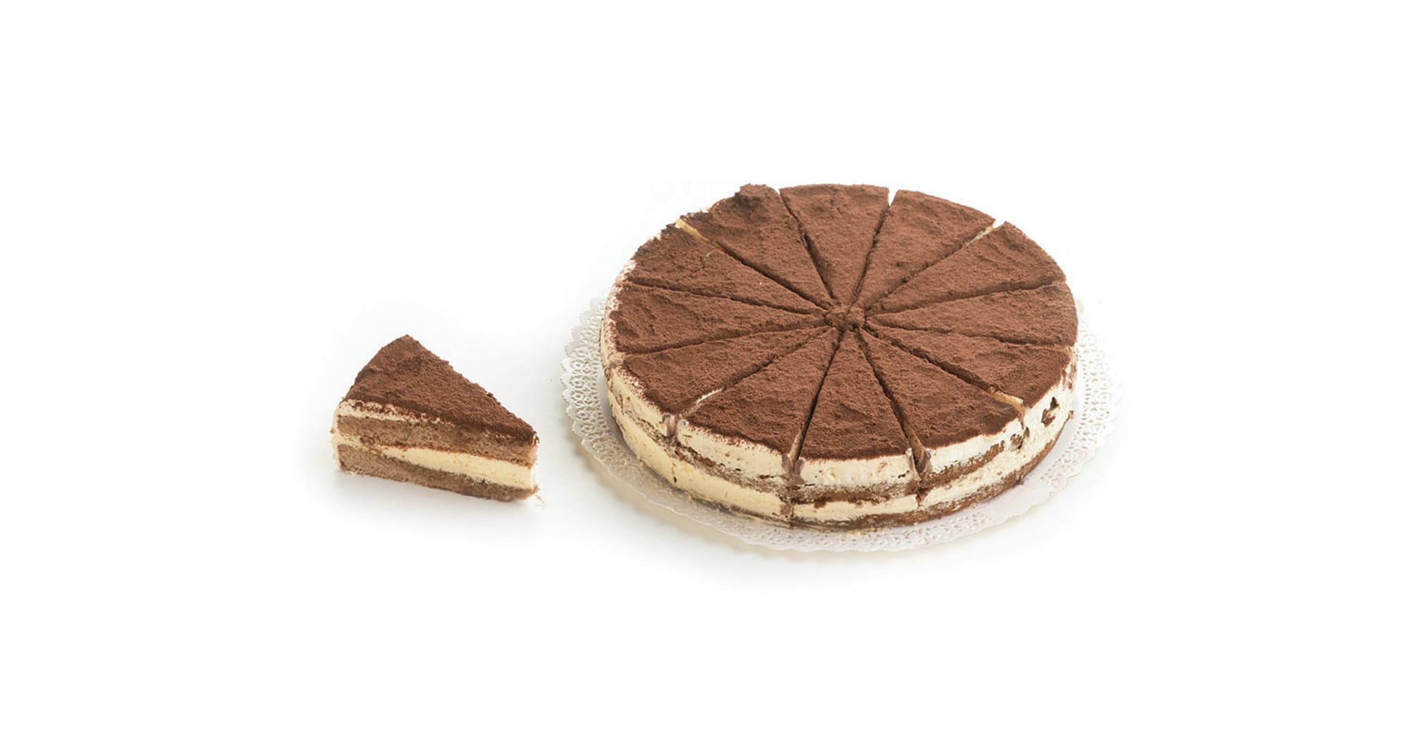 Pre-portioned (12p), light coffee-soaked sponge cake with cream and mascarpone filling with a touch of Marsala (original recipe).